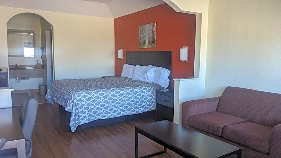 A seating area with a cable TV is featured in this suite. A cable TV, a microwave and a refrigerator are also included.